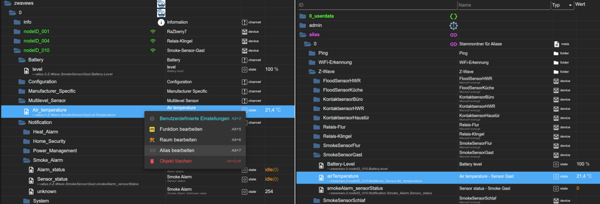 ioBroker.alias-manager dient dagegen hauptsÀchlich dazu, Aliase komfortabel zu erstellen und zu verwalten.