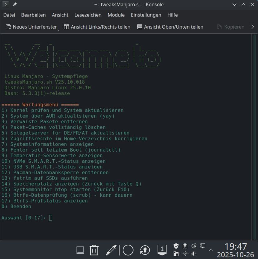 tweaksManjaro.sh ist ein vielseitiges, terminalbasiertes Tool,