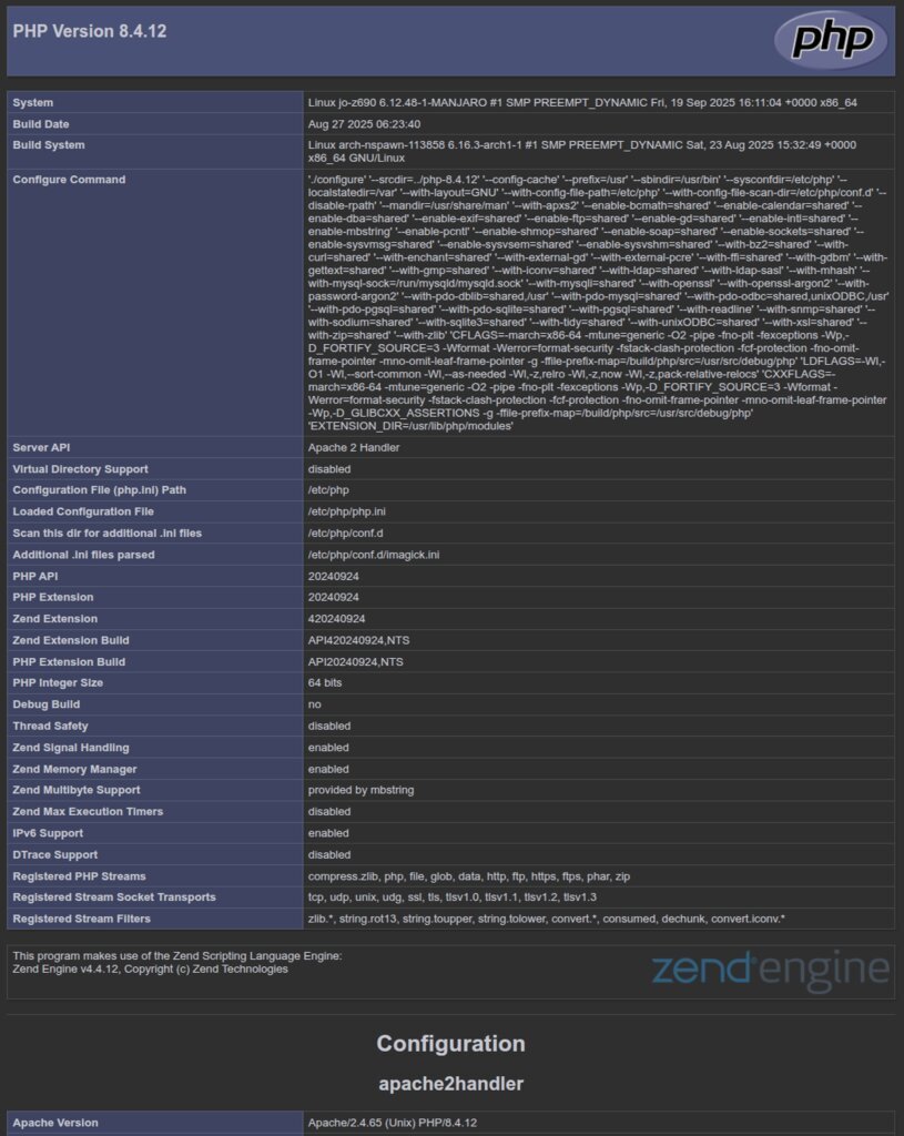 Mit dieser Anleitung baust Du lokal unter Manjaro einen Webserver mit Apache 2.4, PHP 8.4 und MariaDB 12.0 auf.