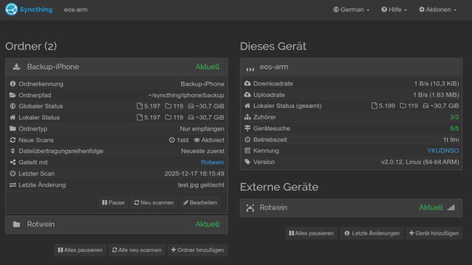 Syncthing auf Linux ist ein vollwertiger Syncthing-Node.
